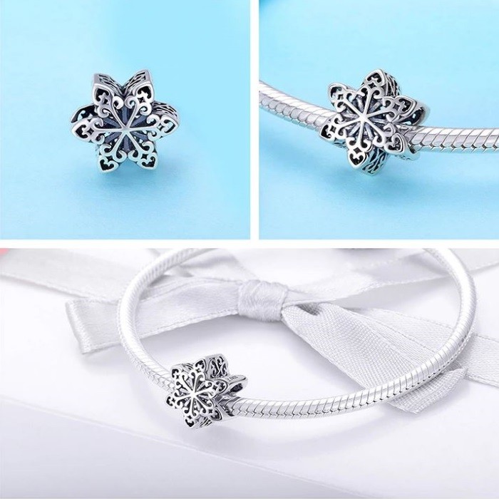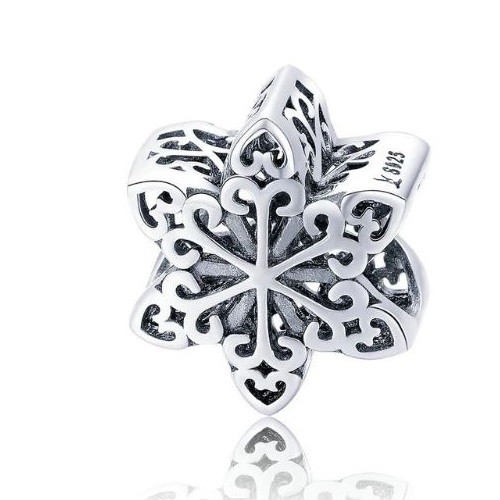 Strieborný prívesok v tvare snehovej vločky. Na náramok, náhrdelník. Váži 1,2 g.