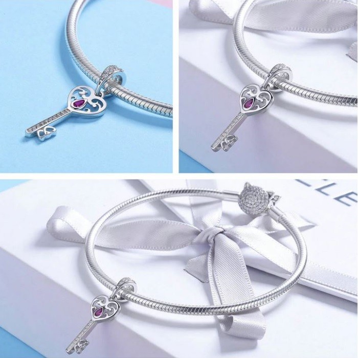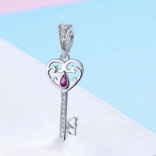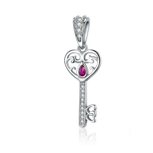 Prívesok v tvare kľúča s malými zirkónovými kryštálmi, vyrobený zo striebra. Na náramok, náhrdelník.