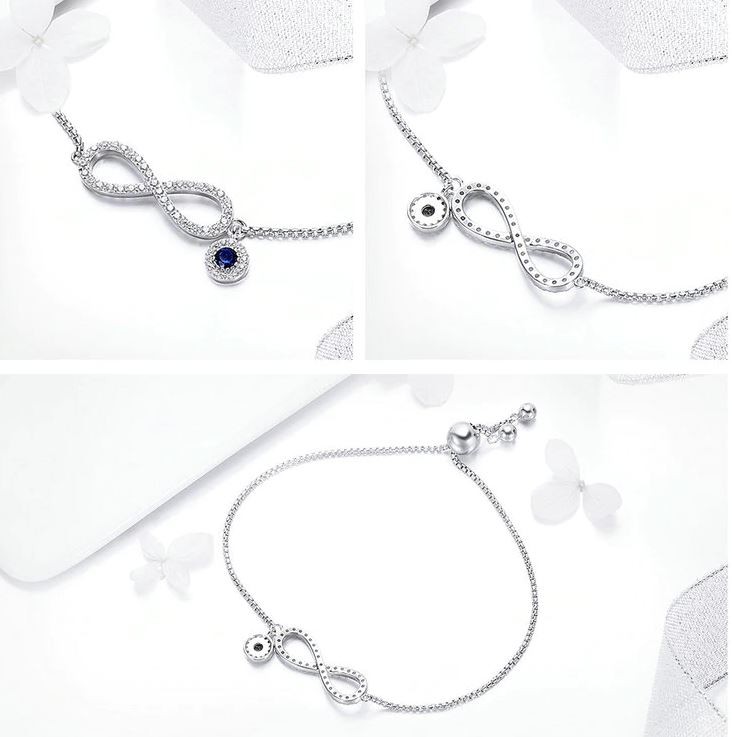 Strieborný náramok so symbolom nekonečna, zdobený kryštálmi