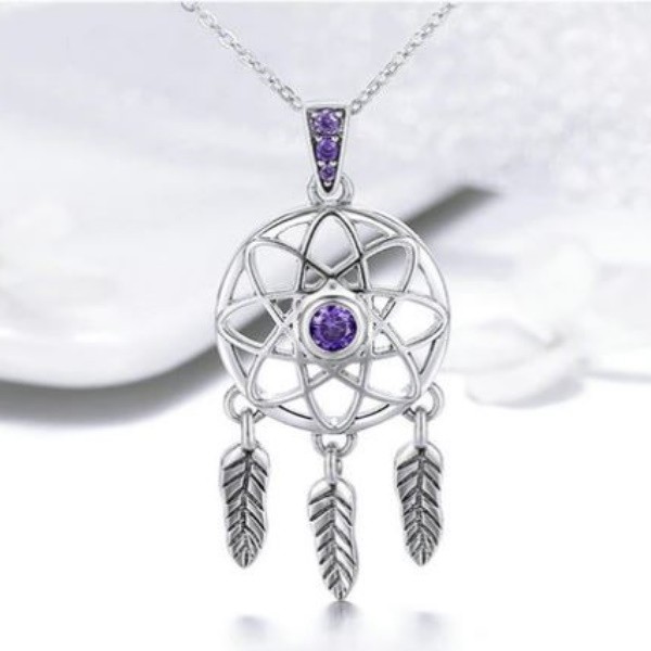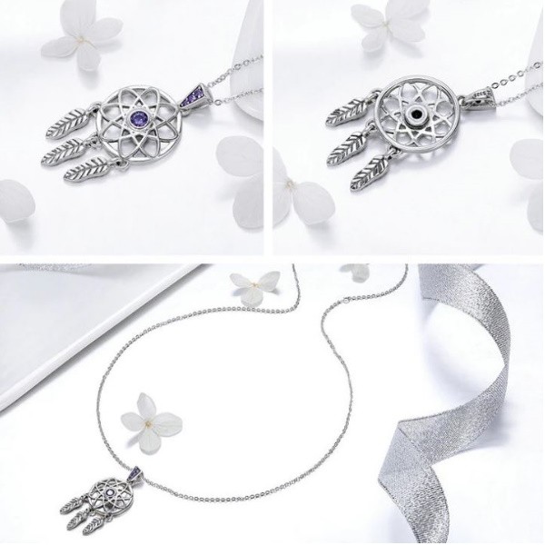Náhrdelník vyrobený zo striebra, s príveskom s vyobrazením lapača snov, zdobený fialovým zirkónovým kryštálom. Dĺžka retiazky je 36-45 cm, váha 5,05 g. Veľkosť prívesku je 1,7 × 3,6 cm.