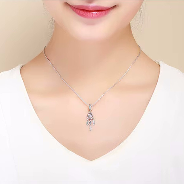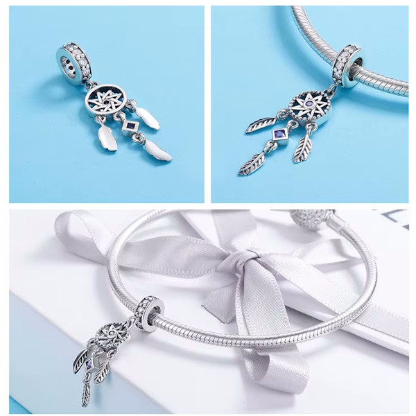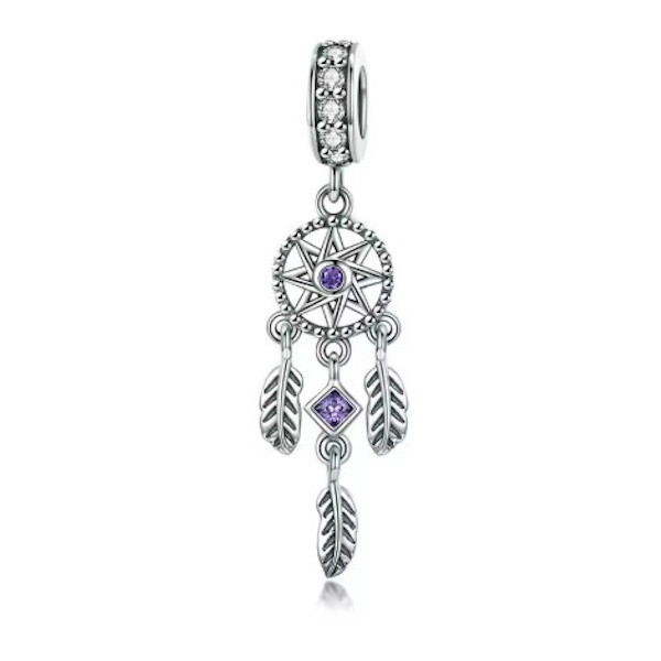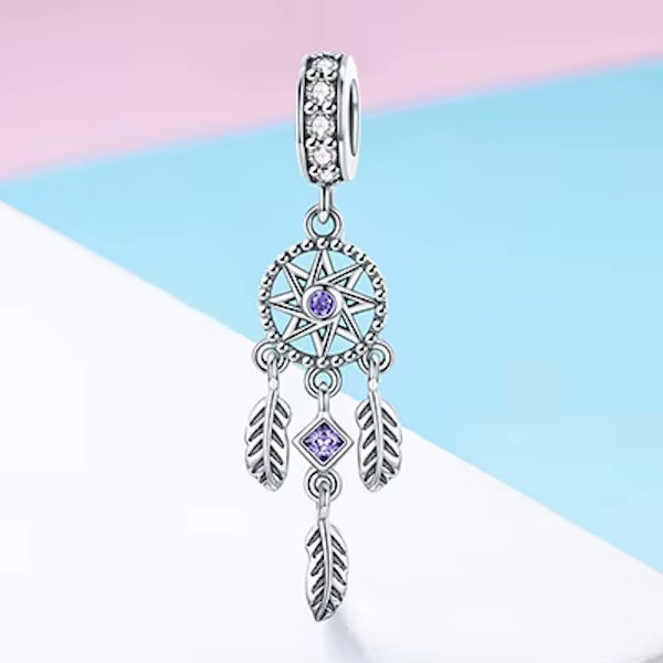 Lépj be az álmaid világába ezzel a gyönyörű ezüst álomfogó charmmal, amely tökéletes kiegészítője lehet bármely karkötőnek vagy nyakláncnak. A 925 sterling ezüstből készült ékszert finom cirkóniumkristályok díszítik, melyek csillogása minden pillantást magára vonz. Az álomfogó motívum különleges jelentéssel bír, így viselése nemcsak stílusos, hanem szimbolikus is lehet.