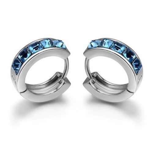 Módne kruhové náušnice zdobené kryštálmi Swarovski. Jeho kovové časti sú vyrobené z nehrdzavejúcej ocele a zliatiny zinku. Jeho rozmer je 1,5 x 0,5 cm. Váži 9,00 g.