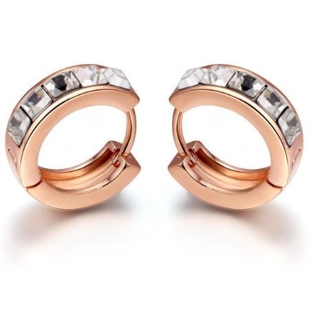Módne kruhové náušnice zdobené kryštálmi Swarovski. Jeho kovové časti sú vyrobené z nehrdzavejúcej ocele a zliatiny zinku. Jeho rozmer je 1,5 x 0,5 cm. Váži 9,00 g.