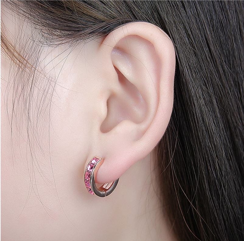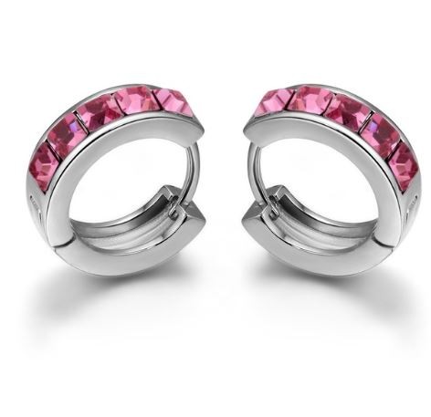Módne kruhové náušnice zdobené kryštálmi Swarovski. Jeho kovové časti sú vyrobené z nehrdzavejúcej ocele a zliatiny zinku. Jeho rozmer je 1,5 x 0,5 cm. Váži 9,00 g.