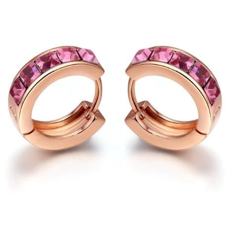 Módne kruhové náušnice zdobené kryštálmi Swarovski. Jeho kovové časti sú vyrobené z nehrdzavejúcej ocele a zliatiny zinku. Jeho rozmer je 1,5 x 0,5 cm. Váži 9,00 g