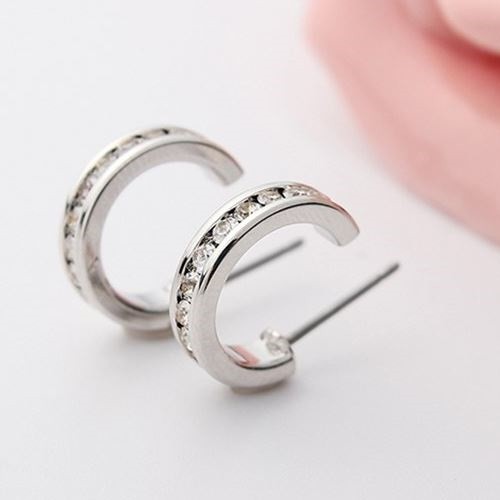 Elegantné kruhové náušnice s českým krištáľom. Materiál: nehrdzavejúca oceľ a zliatina zinku, hrúbka 0,3 cm, priemer 1,3 cm. Váži 5,90 g.