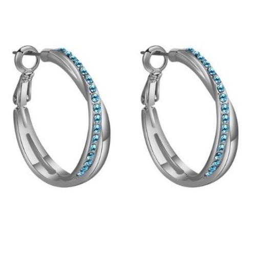 Kruhové náušnice s farebným českým krištáľom, akvamarín