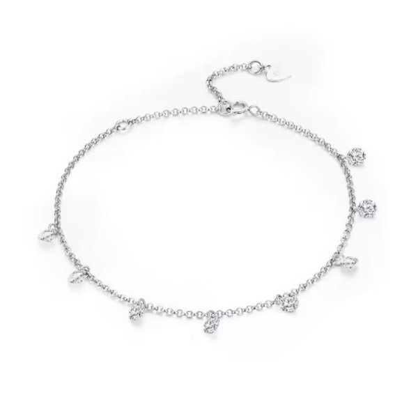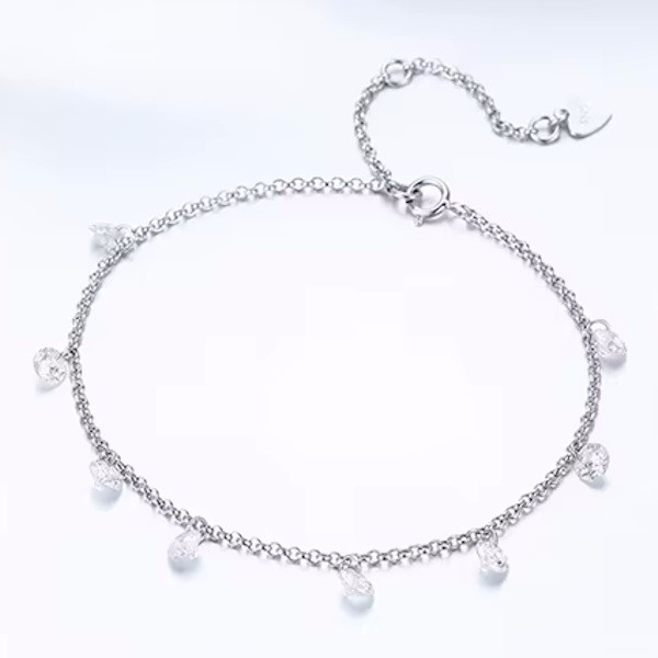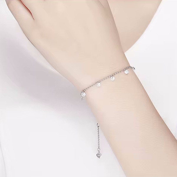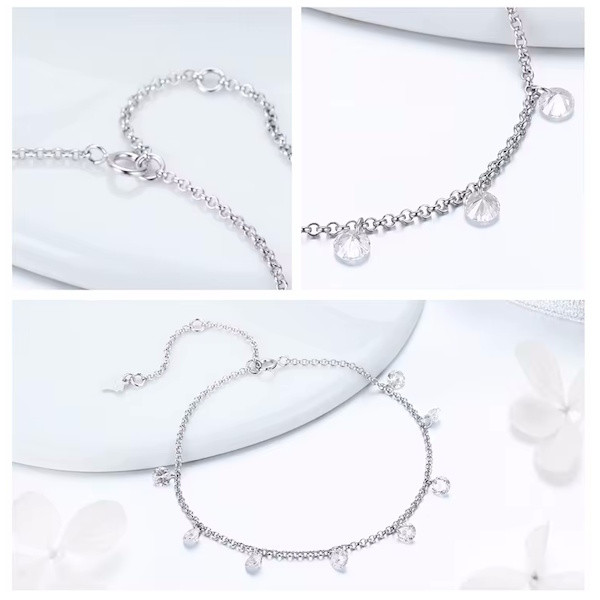 Ez az elegáns ezüst karkötő a kifinomult ízlés és a modern stílus tökéletes ötvözete. A 925 sterling ezüst anyagból készült karkötőt platinabevonat díszíti, ami nemcsak ragyogó fényt kölcsönöz neki, hanem tartóssá is teszi. A karkötőt a csillogó cirkóniumkristály fityegők teszik igazán különlegessé, melyek minden mozdulattal magukra vonják a figyelmet.