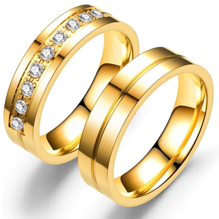 Nerezový pánsky snubný prsteň s gravírovaným prúžkom, zlatý, veľkosť 8