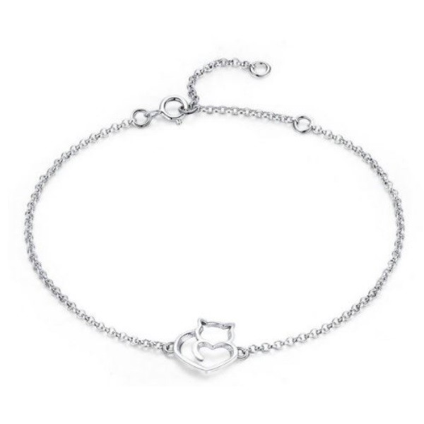 Strieborný náramok s jednoduchým, no očarujúcim mačiatkom. Dĺžka retiazky je 22 cm, rozmer prívesku je 1,4 x 1,1 cm.