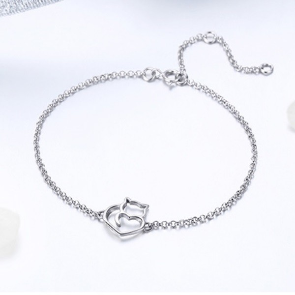 Strieborný náramok s mačičkou