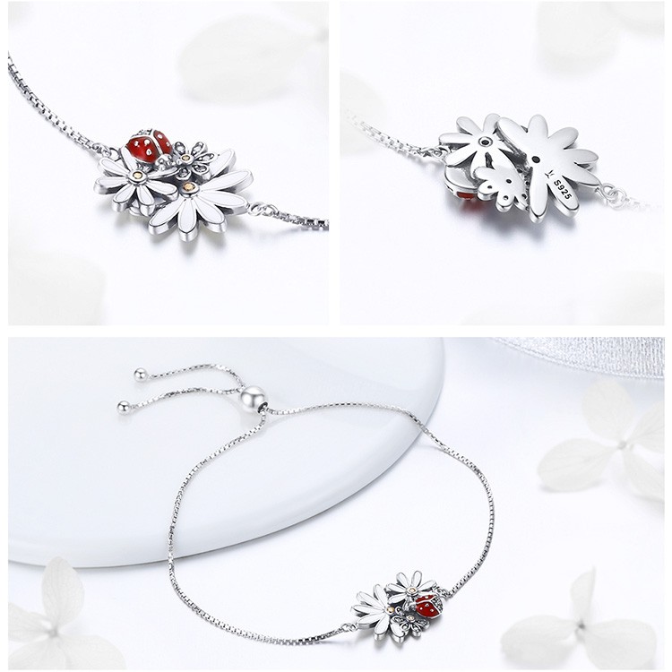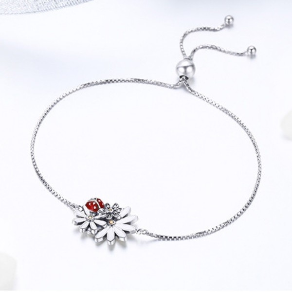 Strieborný náhrdelník s margarétkami a lienkou
