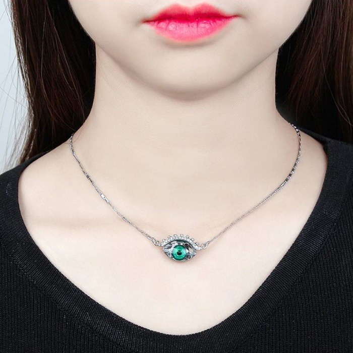 Náhrdelník striebornej farby s príveskom v tvare oka zdobený kryštálmi Swarovski. Veľkosť prívesku je 1,5 x 2,8 cm, dĺžka retiazky je 40 + 5 cm. Materiál: zliatina zinku. Hmotnosť: 10,80 g.