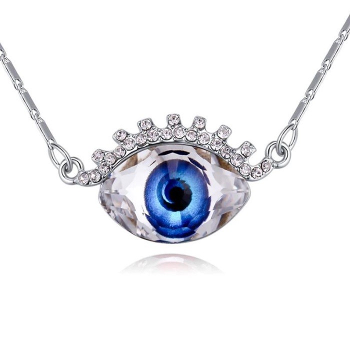 Náhrdelník striebornej farby s príveskom v tvare oka zdobený kryštálmi Swarovski. Veľkosť prívesku je 1,5 x 2,8 cm, dĺžka retiazky je 40 + 5 cm. Materiál: zliatina zinku. Hmotnosť: 10,80 g.