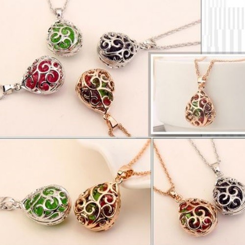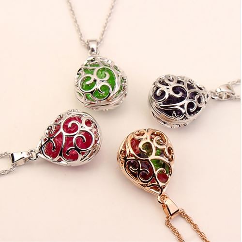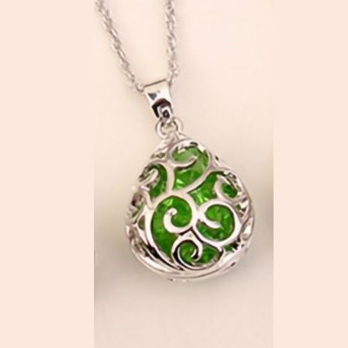 Náhrdelník s elegantným prelamovaným príveskom v tvare kvapky, v ktorom sa trblietajú malé farebné české kryštály. Dĺžka retiazky je 40+5 cm. Veľkosť prívesku je 1,6 x 2,8 cm.