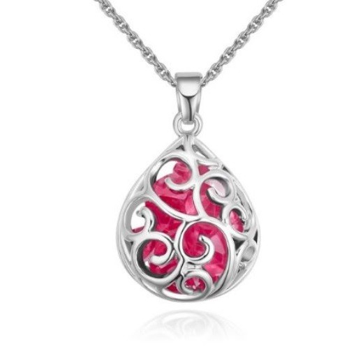 Náhrdelník s ažúrom, prívesok v tvare kvapky, český krištáľ, ružová