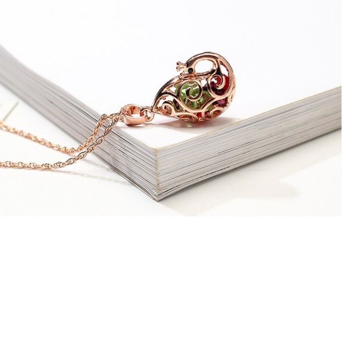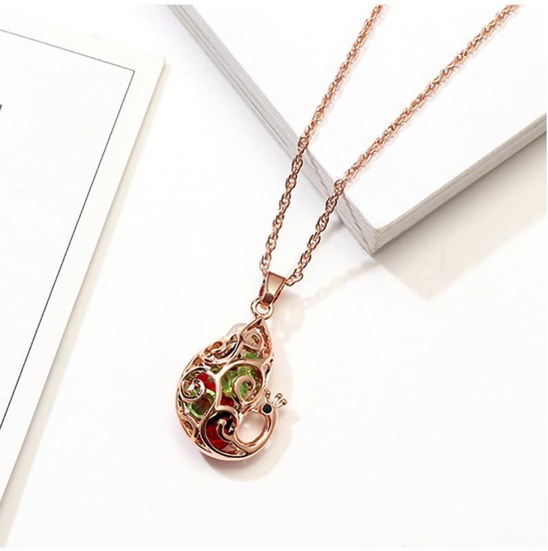 Náhrdelník s príveskom v tvare páva, český krištáľ, viacfarebný