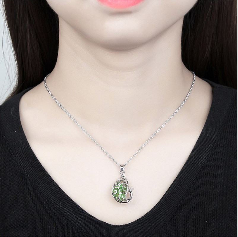Náhrdelník s príveskom páv, český krištáľ, peridot