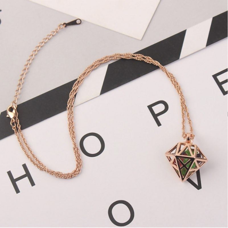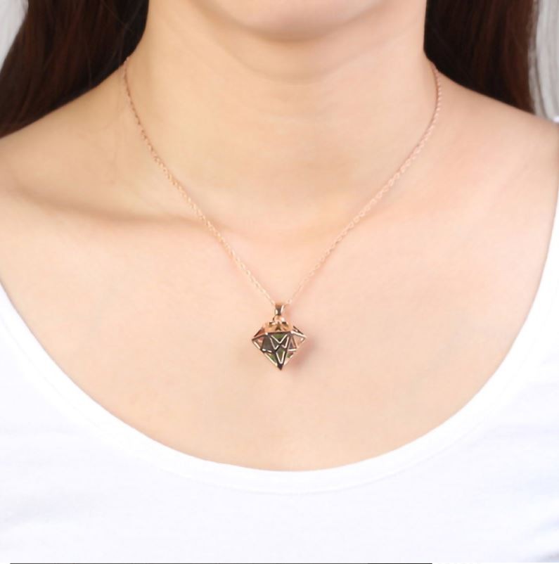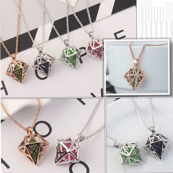 Náhrdelník s elegantným prelamovaným príveskom v tvare diamantového kryštálu, v ktorom sa trblietajú malé farebné české kryštály. Dĺžka retiazky je 40+5 cm. Veľkosť prívesku je 2,0 x 2,6 cm.