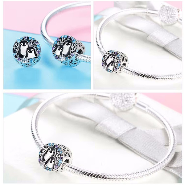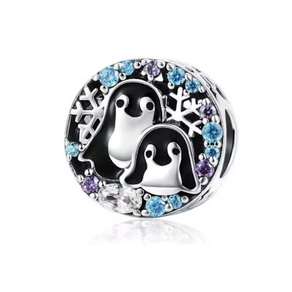 Fedezd fel az ezüst charmok varázslatos világát ezzel a bájos pingvinek által inspirált darabbal! A 925 sterling ezüstből készült charm elegáns és időtálló kiegészítője lehet bármely karkötőnek vagy nyakláncnak. A finoman csillogó cirkóniumkristályok és a színes zománc részletek különleges ragyogást kölcsönöznek ennek a kis műalkotásnak. Az átmérője 10-11 mm, súlya pedig mindössze 2.7 g, így kényelmes viseletet biztosít a mindennapokban. Tökéletes ajándék lehet szeretteid számára, akik értékelik a minőségi és egyedi ékszereket. Lepd meg magad vagy valakit, akit igazán szeretsz, ezzel a különleges darabbal!