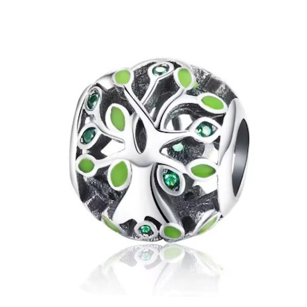 Az ezüst charm, életfa motívummal, tökéletes választás minden alkalomra. A 925-ös sterling ezüstből készült charm elegáns és tartós, míg a cirkóniumkristályok és színes zománc díszítése különleges ragyogást kölcsönöz neki. Az 10-11 mm átmérőjű és mindössze 1.68 g súlyú darab könnyedén illeszkedik karkötődre vagy nyakláncodra, így bármely stílusos megjelenés tökéletes kiegészítője lehet.