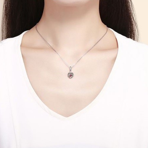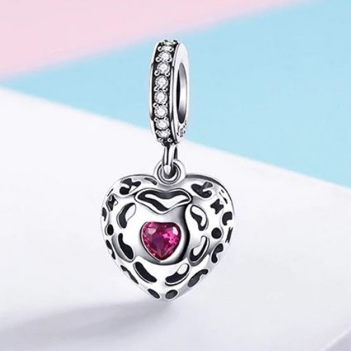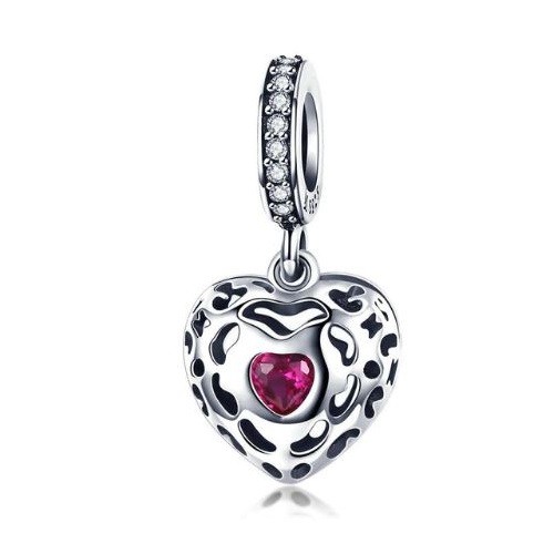 Prívesok v tvare srdca, s kúskom fialového zirkónového kryštálu uprostred, vyrobený zo striebra. Na náramok, náhrdelník.