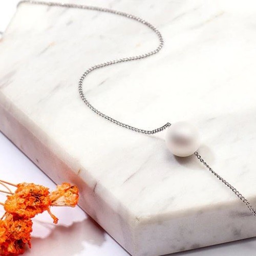 Elegantný náhrdelník s kúskom bielej pravej perly. Veľkosť korálky je 8,0 cm, dĺžka retiazky je 40 + 5 cm.