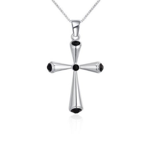 Náhrdelník s príveskom strieborný kríž, český krištáľ, čierny