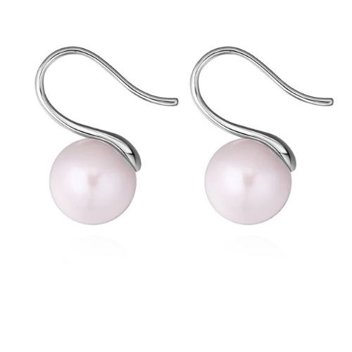 Závesné náušnice vyrobené z kultivovaných perál striebornej farby.