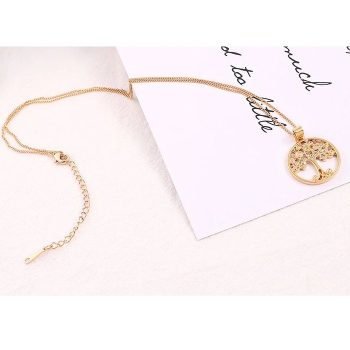 Náhrdelník v trblietavej zlatej farbe s krásne vypracovaným príveskom strom života zdobeným drobnými kryštálmi.