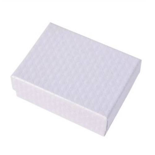 Obdĺžniková darčeková krabička na šperky, vyrobená zo štruktúrovaného papiera. Veľkosť 7 x 9 cm, výška 3,5 cm. Hmotnosť 23 g.