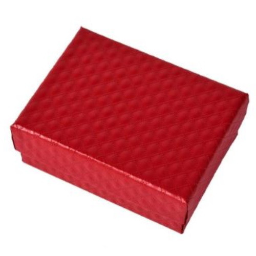 Obdĺžniková darčeková krabička na šperky, vyrobená zo štruktúrovaného papiera. Veľkosť 7 x 9 cm, výška 3,5 cm. Jeho hmotnosť je 23 g.
