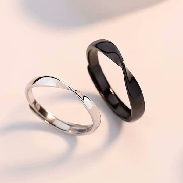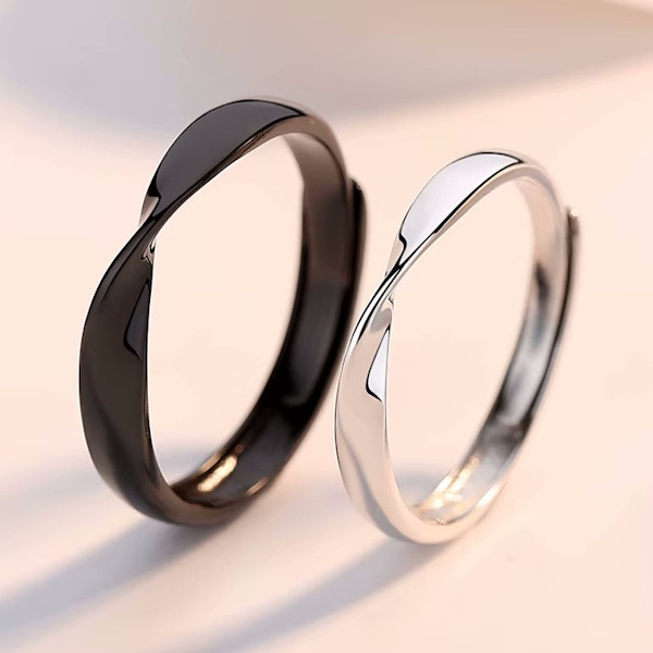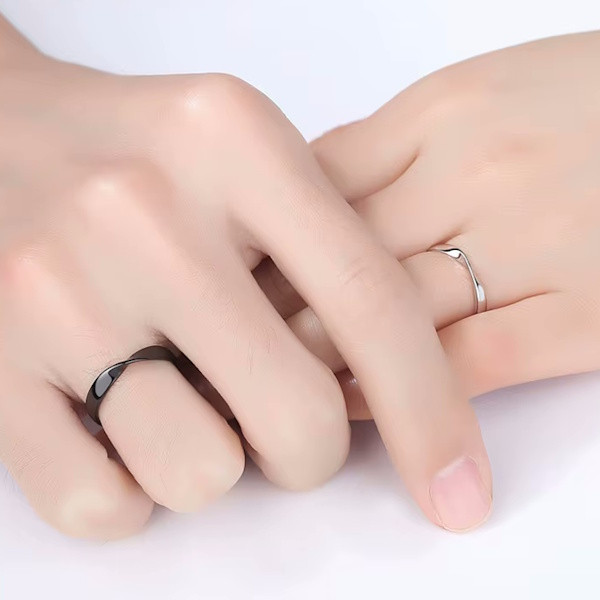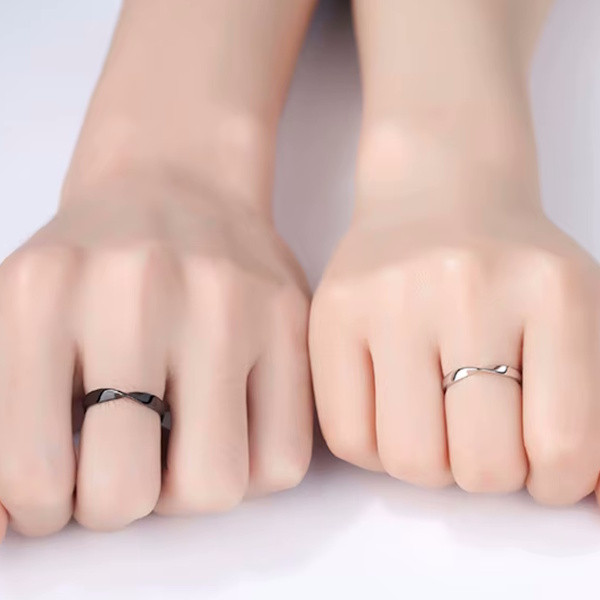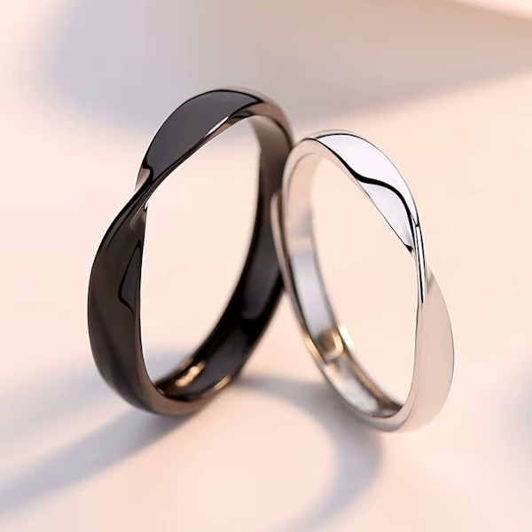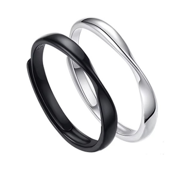 Ezüst karikagyűrű, egy pár, ezüstszín-fekete