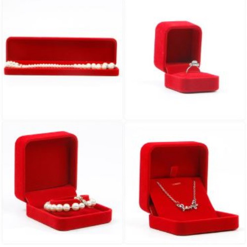 Darčeková krabička na náhrdelník zo zamatu. Veľkosť: 9 x 9 x 4 cm.