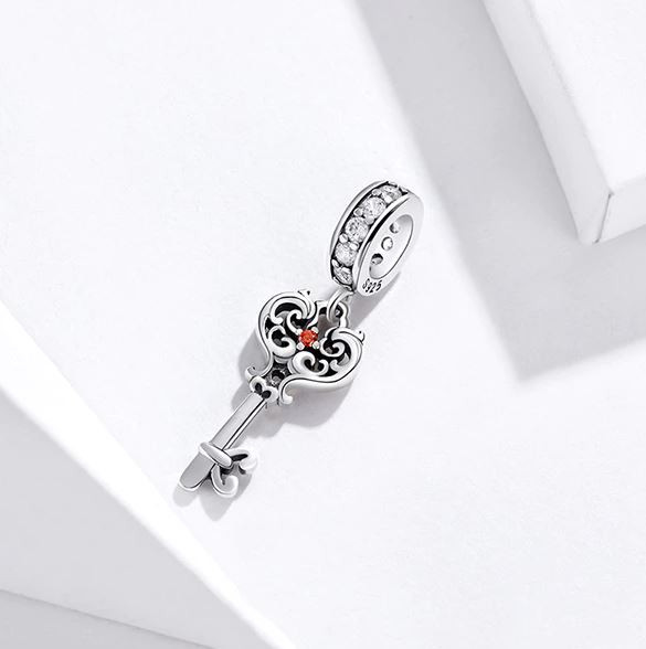 Strieborný prívesok na kľúče na náramok, náhrdelník, so zirkónovým kryštálom. Veľkosť 2,7 x 0,8 cm.