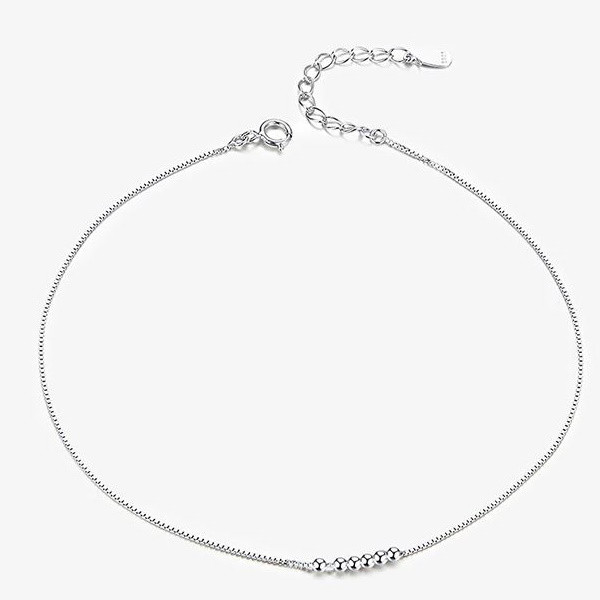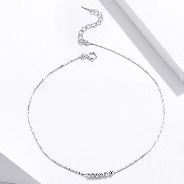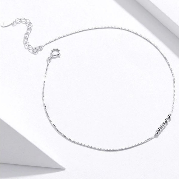 Strieborný náramok s platinovým povlakom, zdobený drobnými perličkami. Dĺžka 22-26 cm.