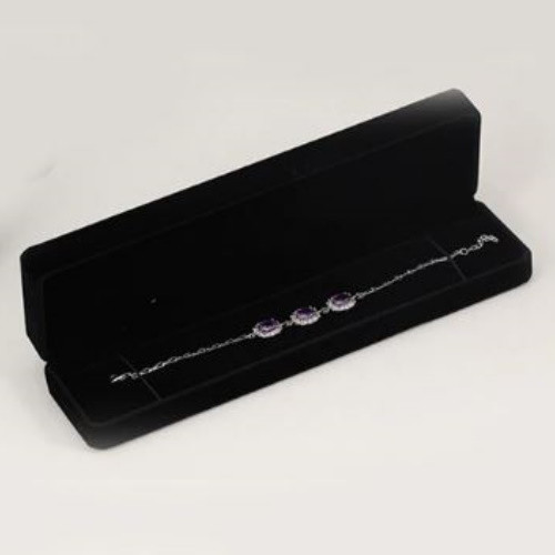 Darčeková krabička na šperky potiahnutá čiernym hodvábom. Veľkosť: 22 x 5,5 x 3 cm.