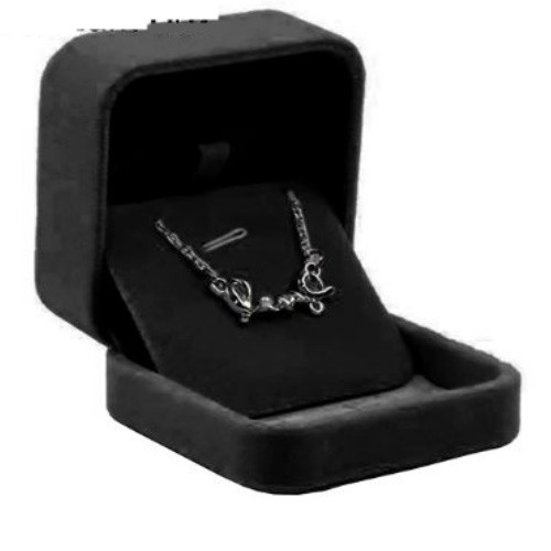 Darčeková krabička na šperky potiahnutá čiernym hodvábom. Veľkosť: 7 x 7 x 4 cm.