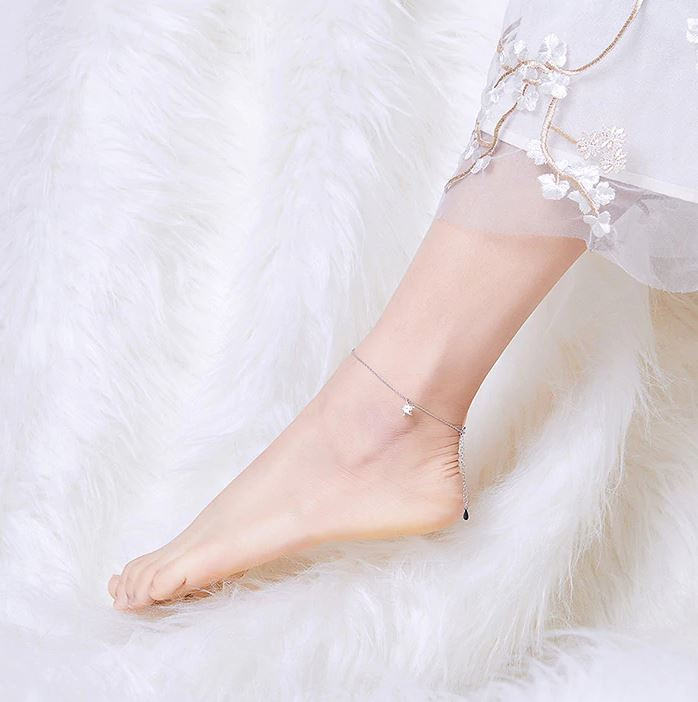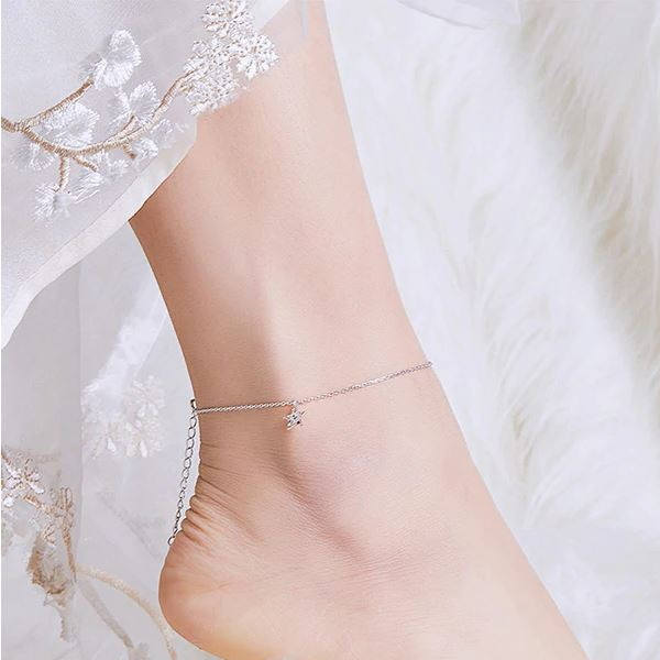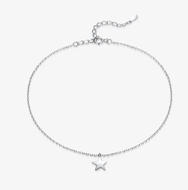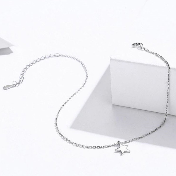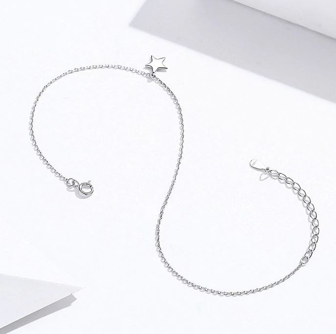 Strieborný náramok s platinovým povlakom, zdobený príveskom s hviezdou. Dĺžka 26 cm, váha 1,9 g.