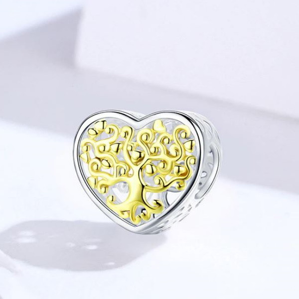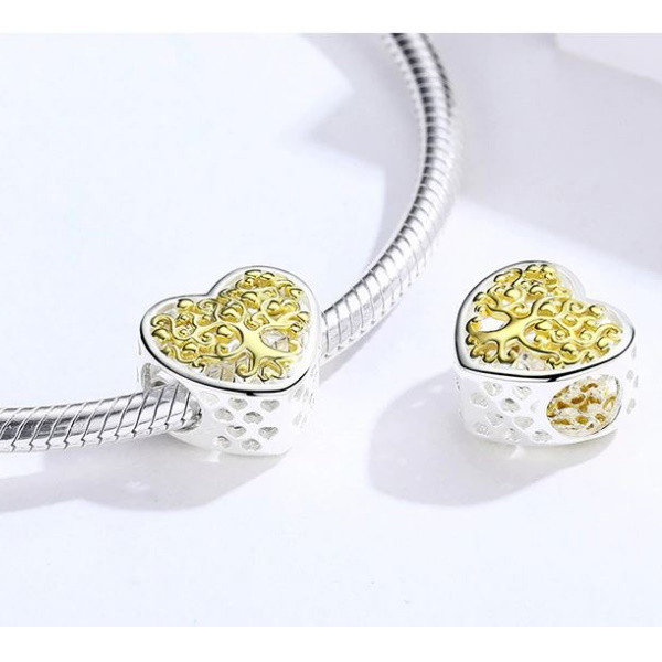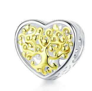 Krásne spracovaný strieborný prívesok s pozláteným motívom stromu života, na náramok alebo náhrdelník. Veľkosť 1,1 x 1,2, hmotnosť 2 g.