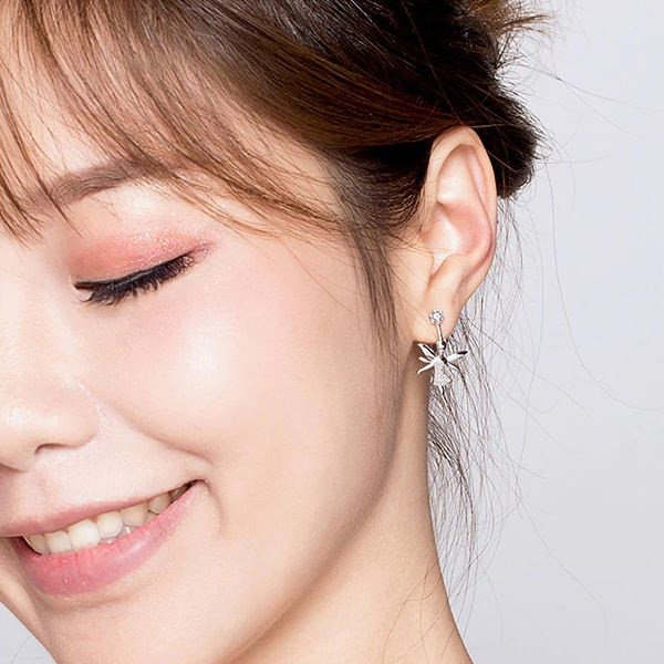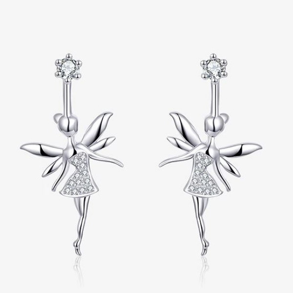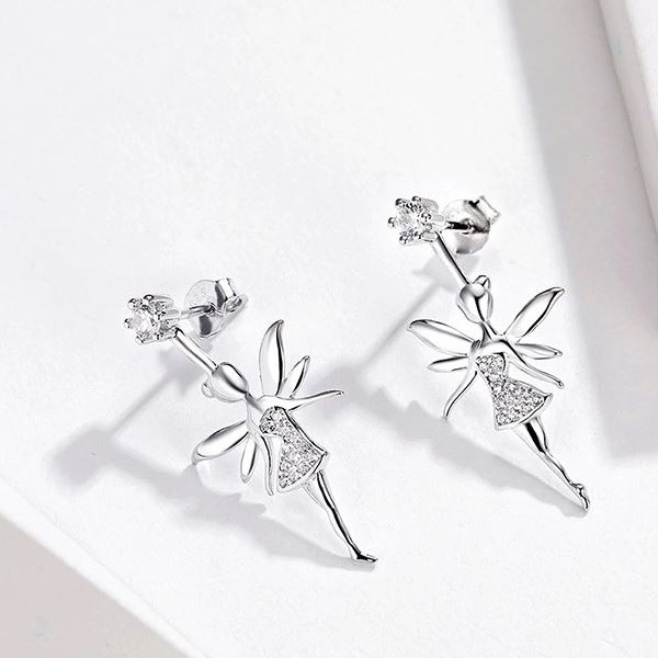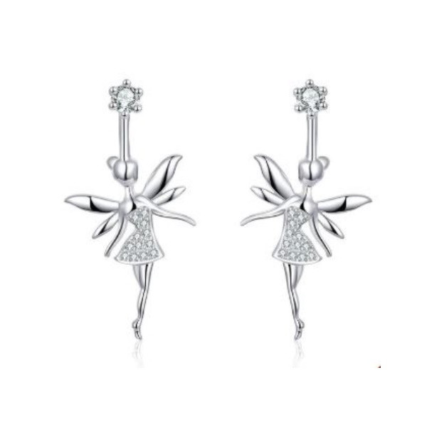 Strieborné náušnice s platinovým povrchom, zdobené zirkónovým kryštálom. Veľkosť 2,9 x 1,4 cm, váha 2,6 g.