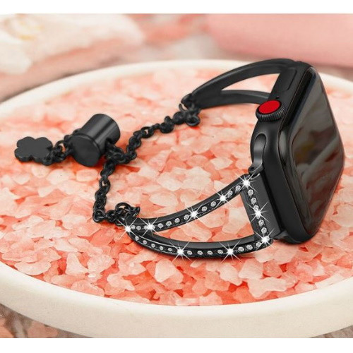 Elegantný remienok Apple watch vyrobený z nehrdzavejúcej ocele, zdobený drobnými lesklými kamienkami. Dĺžka 20 cm.