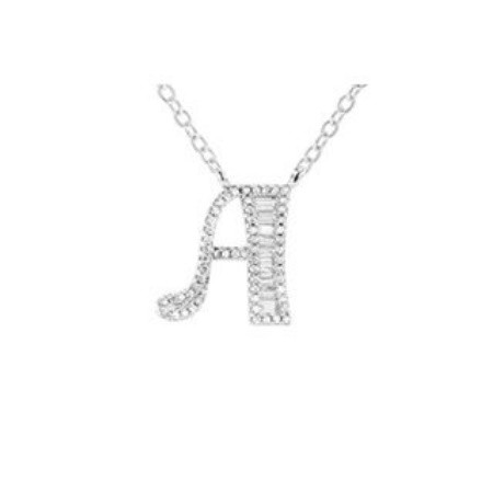 Náhrdelník vyrobený zo striebra, s príveskom zdobeným bielym zirkónovým kryštálom, tvoriacim písmeno. Hmotnosť 4 g.