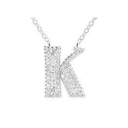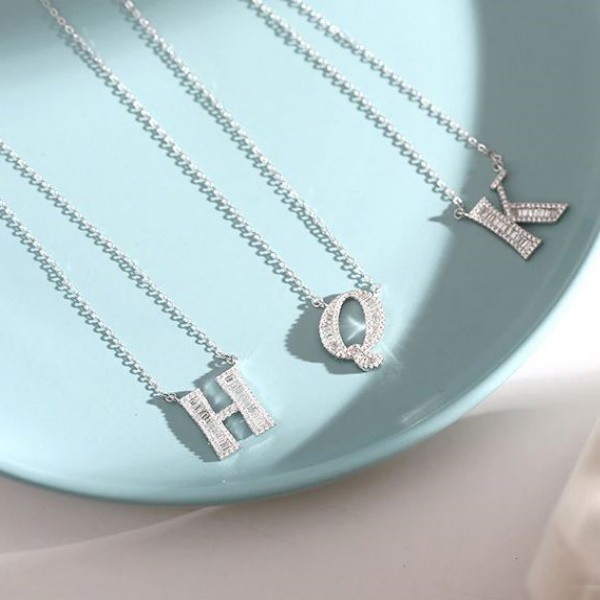 Náhrdelník vyrobený zo striebra, s príveskom zdobeným bielym zirkónovým kryštálom, tvoriacim písmeno. Hmotnosť 4 g.