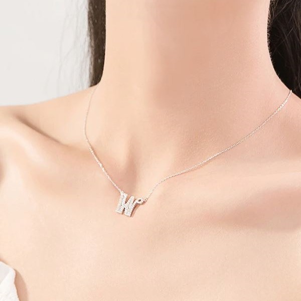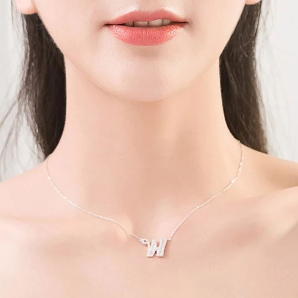 Strieborný náhrdelník s príveskom písmena, W