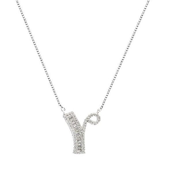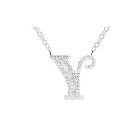 Náhrdelník vyrobený zo striebra, s príveskom zdobeným bielym zirkónovým kryštálom, tvoriacim písmeno. Hmotnosť 4 g.