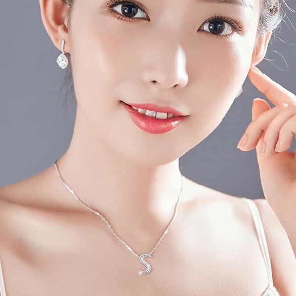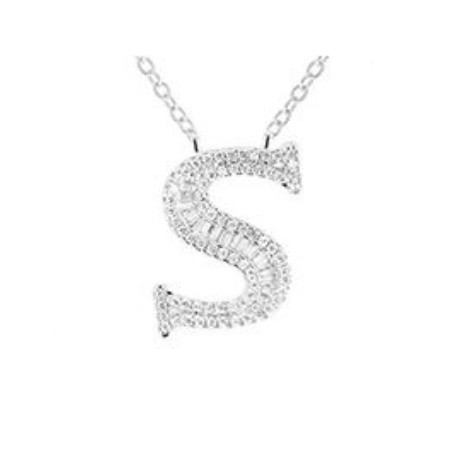 Náhrdelník vyrobený zo striebra, s príveskom zdobeným bielym zirkónovým kryštálom, tvoriacim písmeno. Hmotnosť 4 g.