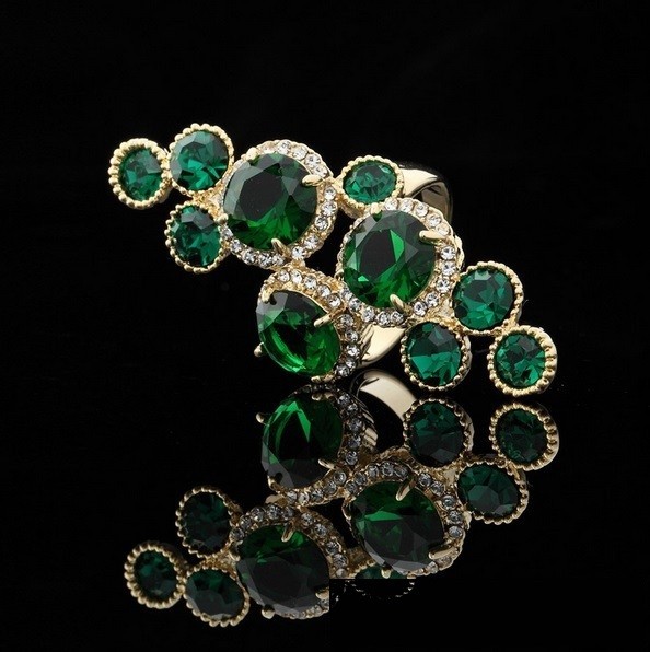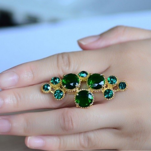 Módny prsteň zo zliatiny zinku s kamienkami a zirkónmi.