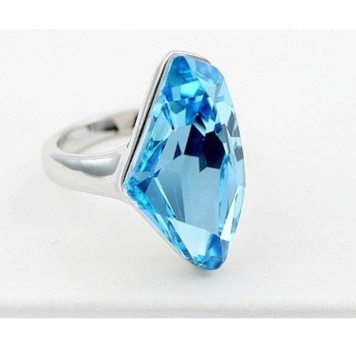 Prsteň v tvare diamantu, Aquamarine, zdobený kryštálmi Swarovski, 6.5