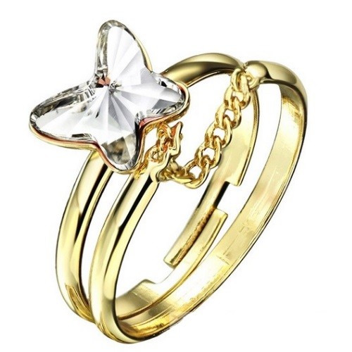 Elegantný dvojitý prsteň zo zliatiny zinku s rakúskym krištáľom.